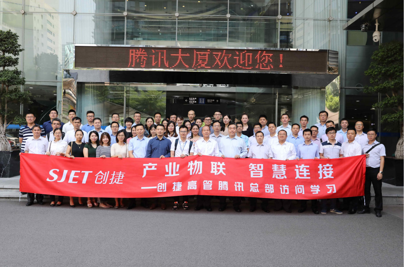 7月11日,在公司黃育存董事(shì)長的帶領下(xià),創捷高(gāo)管一行50多人前往騰訊總部訪問學習。2017年創捷已與騰訊集團簽署戰略合作(zuò)協議(yì),雙方在物聯網